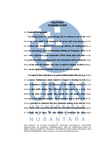 ⭐ Djauhary, Andrew (2022) Pengaruh Human Capability, Dynamic Capability, Orientasi Konsumen terhadap Kinerja Perusahaan dengan Menggunakan Kemampuan Inovasi sebagai Peran Mediasi untuk Mewujudkan Inklusi Teknologi Finansial untuk Usaha Kecil dan Menengah. Master Thesis, Universitas Multimedia Nusantara.