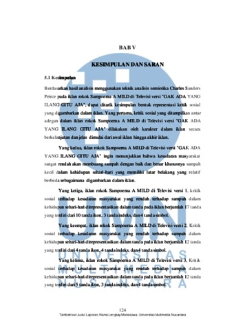 De Mikhael Bonardo Hutapea, Arkief (2022) Representation of Social Criticism on Cigarette Commercials Television Advertising (Semiotic Analysis of Charles Sanders Peirce on Sampoerna A MILD Cigarette Commercials Advertising Discourse of "GAK ADA YANG ILANG GITU AJA”) Edition. Bachelor Thesis, Universitas Multimedia Nusantara.