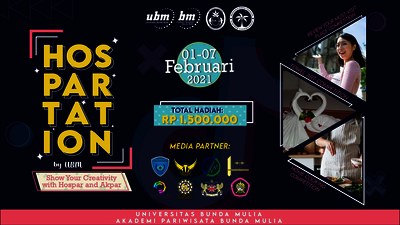 TANGERANG — Mahasiswi Program Studi Perhotelan Universitas Multimedia Nusantara (UMN), Novi Anelia, berhasil meraih Juara 2 dalam kategori Towel Art Video pada ajang HOSPARTATION 2021 yang diselenggarakan oleh Universitas Bunda Mulia (UBM) pada 11 Februari 2021. Pengumuman pemenang dilakukan melalui YouTube Universitas Bunda Mulia. Kompetisi ini bertujuan untuk mengasah keterampilan mahasiswa dalam seni melipat handuk (towel art), yang merupakan salah satu aspek penting dalam industri perhotelan. Keberhasilan Novi Anelia dalam ajang ini menunjukkan kompetensi mahasiswa Perhotelan UMN dalam bidang hospitality serta kreativitas dalam seni perhotelan.