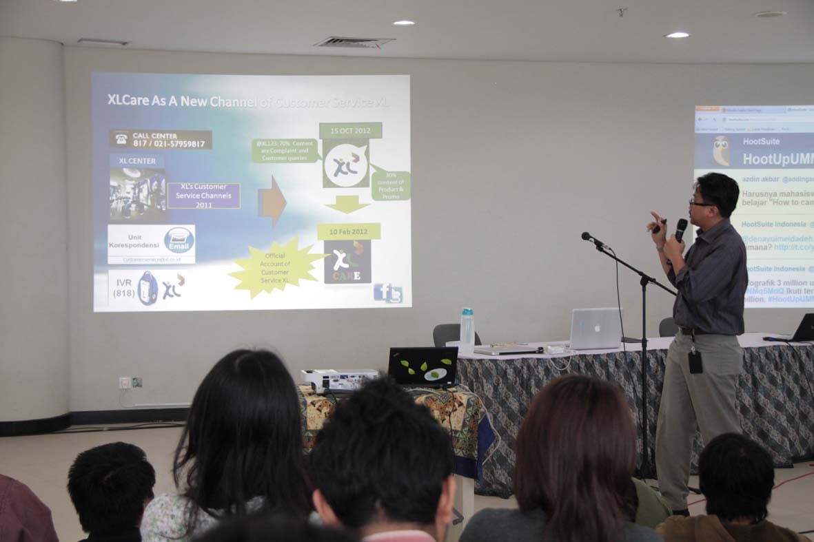 TANGERANG — Pada 6 Juni 2012, Universitas Multimedia Nusantara (UMN) menggelar HootUp Gathering yang membahas pengelolaan media sosial secara efektif. Acara ini menghadirkan tiga pembicara utama, yakni Stephanie Wiriahardja, Manager Customer Service di HootSuite Canada, Ariesa Pramudito, Manager CS-Customer Experience di XL Axiata, Tbk, dan Enda Nasution, seorang blogger Indonesia. Kegiatan ini bertujuan untuk memberikan wawasan kepada peserta mengenai cara mengelola media sosial secara profesional, serta memanfaatkan HootSuite sebagai alat manajemen yang efisien, seiring dengan tingginya penggunaan media sosial di Indonesia, termasuk Twitter.