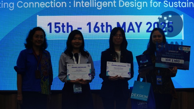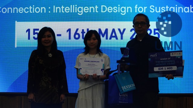 TANGERANG - Program Studi DKV UMN menyelenggarakan International Conference of Innovation in Media and Visual Design (IMDES) 2025 pada Jumat (16/05/2025). Tahun ketiga pelaksanaan ini mengangkat tema “Creating Connection: Intelligent Design for Sustainable Future”, menghadirkan kolaborasi antara mahasiswa, akademisi, dan institusi, termasuk Multimedia Nusantara Polytechnic (MNP). Kegiatan ini menekankan pentingnya desain cerdas dan berkelanjutan serta peran insan kreatif dalam menjawab isu global seperti perubahan iklim dan pengelolaan sumber daya. IMDES 2025 menghadirkan seminar, pameran karya, serta workshop kreatif, dengan total 30 riset dan 46 karya yang dipamerkan, termasuk kontribusi peserta internasional. Seluruh karya dan riset terpilih akan dipublikasikan dalam bentuk ISSN dan ISBN. Melalui IMDES 2025, UMN mendorong mahasiswa untuk berjejaring, menghasilkan solusi desain berdampak, dan berkontribusi pada masa depan yang berkelanjutan.