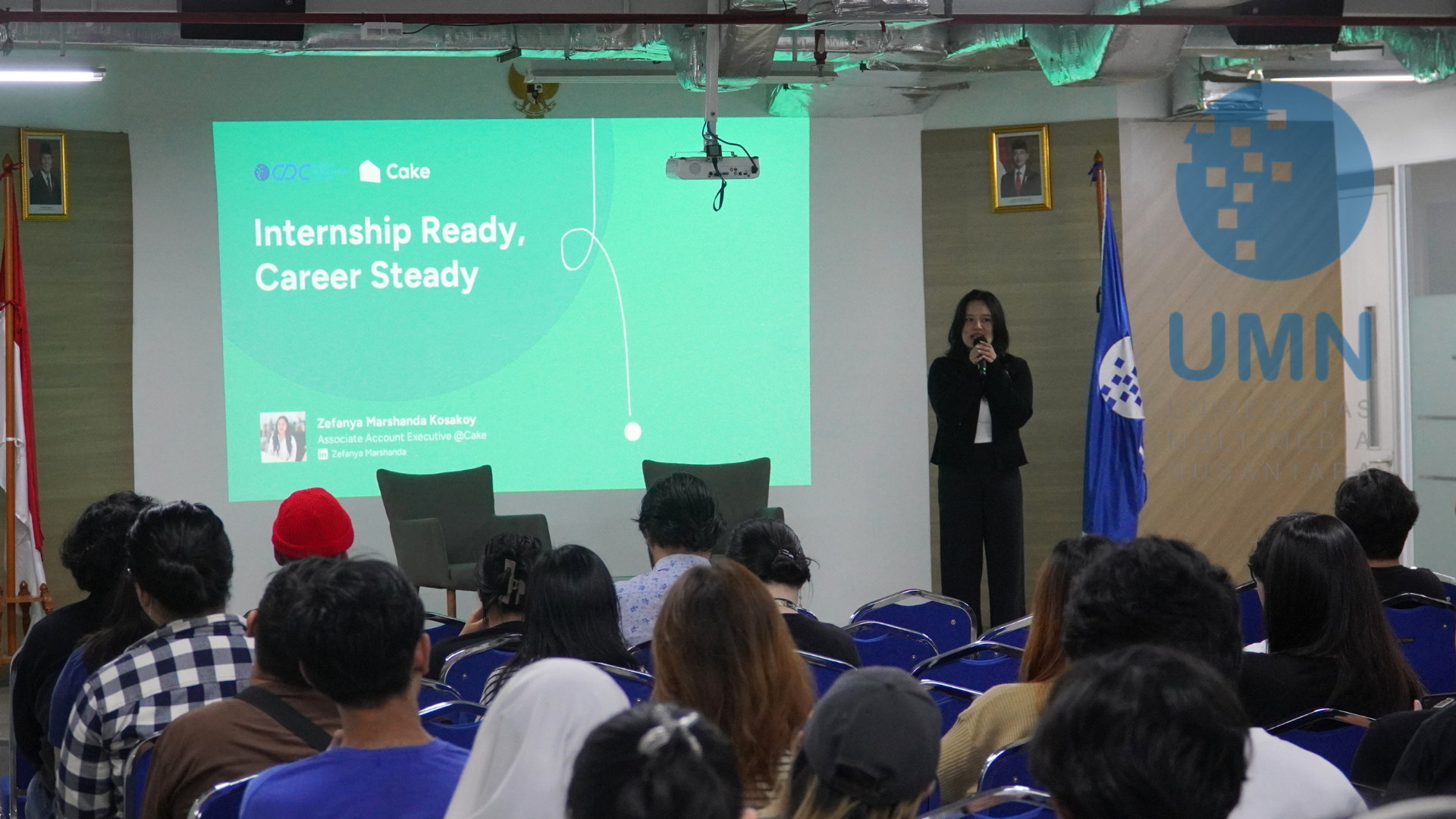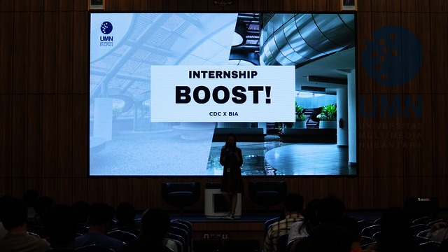 TANGERANG - ada Rabu, (18/06/2025) Universitas Multimedia Nusantara (UMN) melalui Career Development Centre dan Biro Info Akademik mengadakan kegiatan “Internship Boost” untuk membekali mahasiswa yang akan menjalani magang. Kegiatan ini menghadirkan Guskara Pradita Prana Arief (Product Owner & Project Manager Klob) dan Zefanya Marshanda Kosakay (Associate Account Executive Cake) yang membagikan pengalaman seputar dunia kerja dan tips menghadapi proses magang. Para narasumber menekankan pentingnya magang sebagai langkah awal karier, mulai dari menyiapkan CV, portofolio, hingga menghadapi wawancara kerja dengan percaya diri dan profesional. Melalui kegiatan ini, mahasiswa diharapkan lebih siap menghadapi dunia industri serta mampu mengembangkan keterampilan dan jaringan profesional sejak dini.