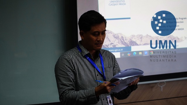 TANGERANG - Fakultas Teknik dan Informatika (FTI) UMN mengadakan hari kedua Expert Talk pada Kamis, (3/7/2025) dengan topik “Implementation of Internet of Things (IoT) and Artificial Intelligence (AI) in Agriculture.” Kegiatan ini menghadirkan Dr. Suputa, Kepala Program Magister Ilmu Hama, Fakultas Pertanian Universitas Gadjah Mada (UGM). Dr. Suputa menjelaskan bahwa sektor pertanian global tengah menghadapi tantangan seperti serangan hama, kekurangan tenaga kerja, dan cuaca tidak menentu. Melalui penerapan AI dan IoT, sektor ini dapat mengumpulkan data secara efisien untuk membantu pengelolaan hama, memprediksi serangan, serta mengatur penggunaan pestisida agar lebih tepat dan ramah lingkungan. Ia menekankan bahwa integrasi teknologi ini mendukung pertanian berkelanjutan (sustainable farming) karena menciptakan sistem smart farming tanpa mencemari lingkungan. Dr. Suputa juga membuka peluang kolaborasi antara UMN dan UGM dalam riset serta penerapan teknologi di bidang pertanian.