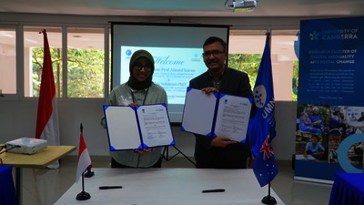 TANGERANG - UMN menerima kunjungan University of Canberra dan National Electric Vehicle Centre of Excellence (NEVCE) pada 8 Agustus 2025 untuk meresmikan kolaborasi dengan Fakultas Teknik dan Informatika. Kunjungan ini memperkuat komitmen UMN dalam Tri Dharma Perguruan Tinggi melalui perluasan riset dan kerja sama akademik. Pembahasan kerja sama meliputi peluang riset lintas fakultas, pengembangan solusi untuk isu masyarakat, serta kolaborasi berkelanjutan dalam bidang kendaraan listrik dan riset sosial. Para perwakilan University of Canberra dan NEVCE menyampaikan ketertarikan untuk memperluas kerja sama, termasuk diskusi akademik, pertukaran pengetahuan, dan proyek riset bersama. Kolaborasi ini diharapkan menjadi langkah strategis untuk meningkatkan kapasitas riset UMN dan menghasilkan kontribusi nyata bagi masyarakat.