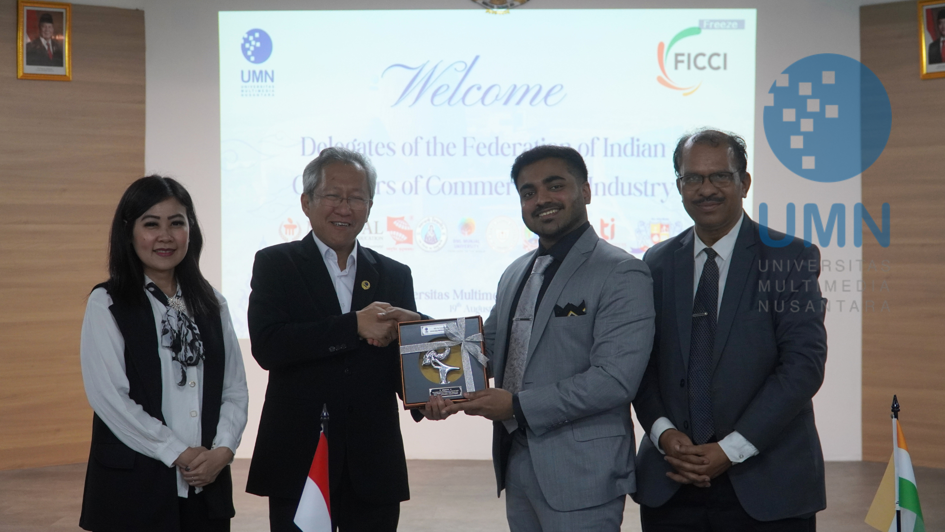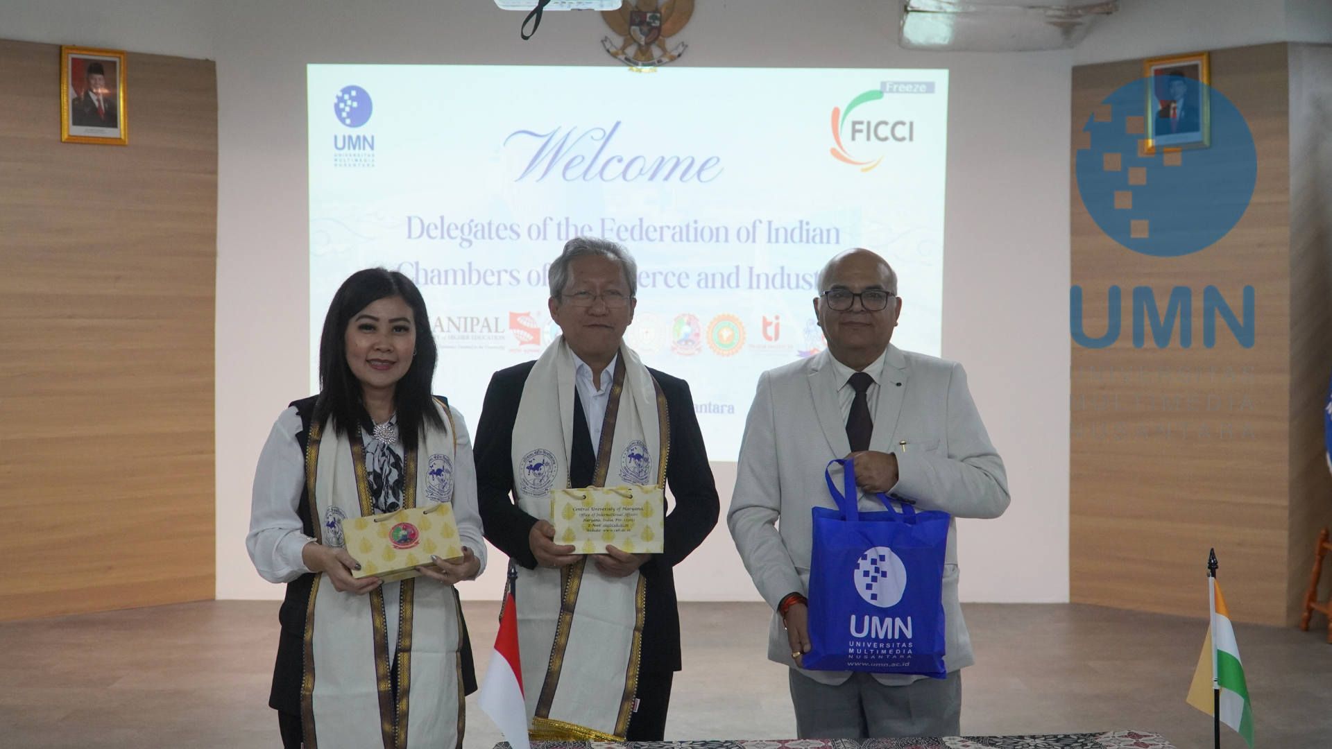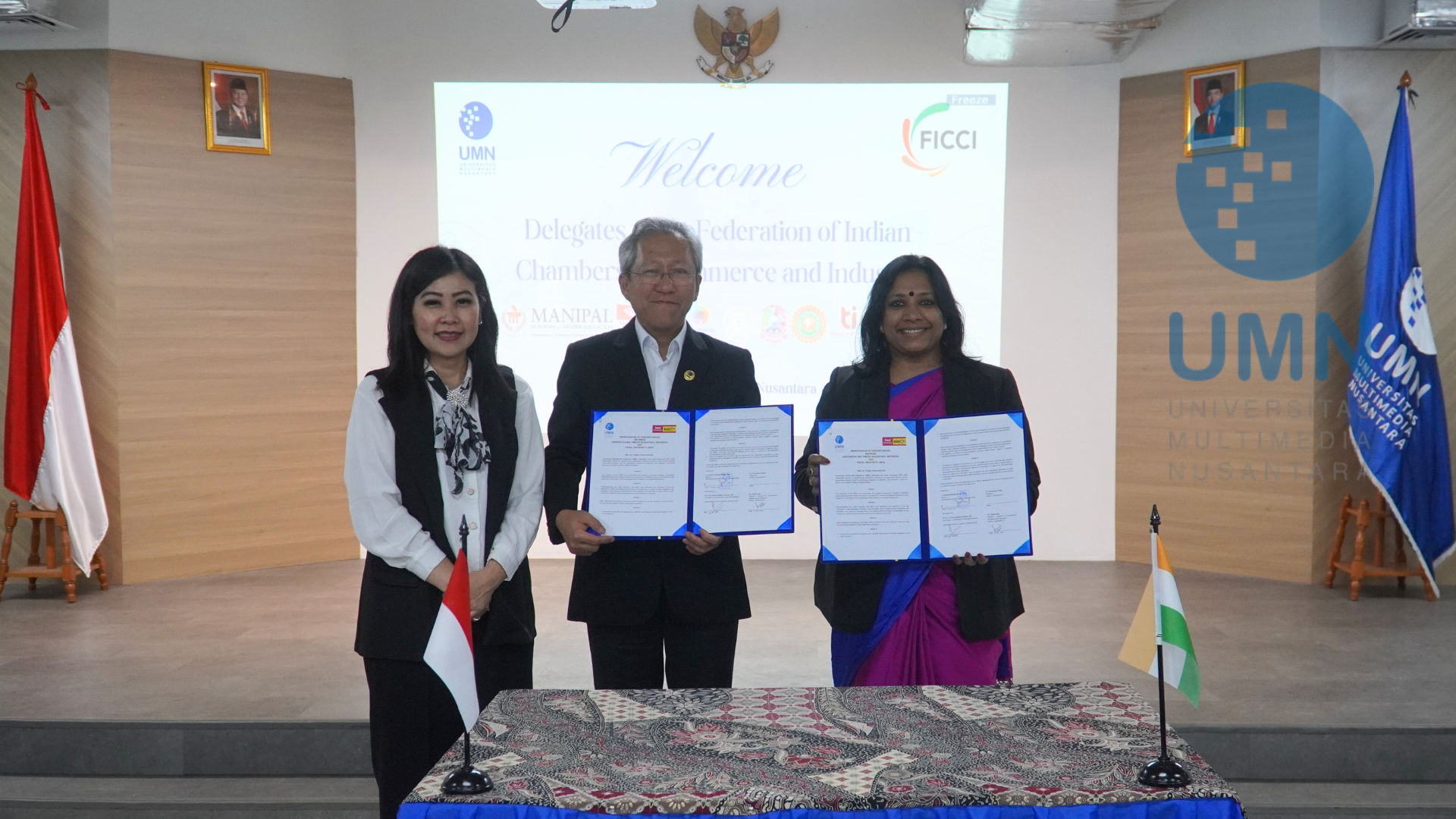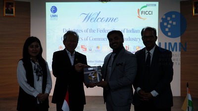 TANGERANG - Universitas Multimedia Nusantara (UMN) pada Selasa (19/08/2025) menerima kunjungan Federation of Indian Chambers of Commerce & Industry (FICCI) bersama 10 perguruan tinggi India untuk meresmikan kerja sama internasional. Pertemuan ini membahas peluang kolaborasi seperti student exchange, short course, research collaboration, pengembangan Artificial Intelligence, program berbasis SDGs, dan pertukaran dosen. Kunjungan ini memperkuat jejaring global UMN dan membuka peluang program serta riset berkelanjutan yang berdampak bagi mahasiswa dan civitas akademik.