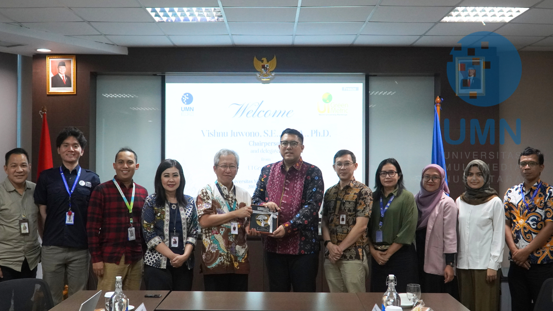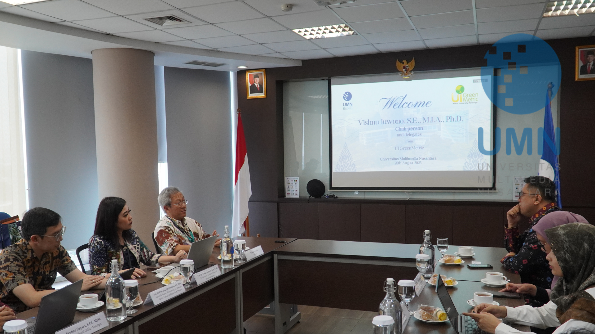 Tangerang - (20/08/2025) Universitas Multimedia Nusantara (UMN) menerima kunjungan tim UI GreenMetric yang dipimpin Ketua UI GreenMetric, Dr. Vishnu Juwono, untuk membahas peluang kerja sama dalam pengembangan kampus berkelanjutan. Delegasi disambut oleh Rektor UMN, Ir. Andrey Andoko, beserta jajaran pimpinan universitas. Dalam pertemuan pada (20/08/2025) tersebut, UI GreenMetric mengapresiasi komitmen UMN dalam penerapan prinsip keberlanjutan dan partisipasinya pada platform UI GreenMetric. Kunjungan ini menjadi langkah strategis dalam memperkuat kolaborasi dan mendorong pengembangan kampus hijau yang lebih cerdas dan berkelanjutan.