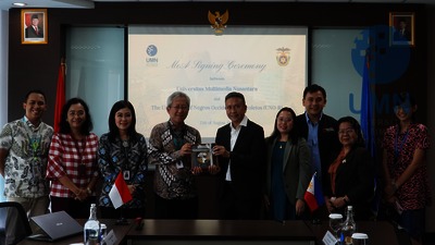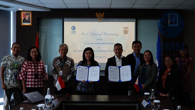 TANGERANG – UMN menerima kunjungan University of Negros Occidental-Recoletos (UNO-R) pada Senin (25/08/2025) untuk meresmikan kolaborasi dan mendiskusikan peluang kerja sama, terutama di bidang riset, AI, dan sustainability. Rektor UMN, Dr. Andrey Andoko, menegaskan komitmen internasionalisasi dan pentingnya kolaborasi global. Pihak UNO-R juga menekankan bahwa kerja sama ini bertujuan memperkuat hubungan dan membangun komunitas pendidikan berkelanjutan. Wakil Rektor UMN, Prof. Dr. Friska Natalia dan Prof. Dr. Florentina Kurniasari, membuka berbagai peluang seperti riset bersama, student mobility, joint-degree, visiting professor, serta kolaborasi kompetisi internasional. Kegiatan berlanjut pada Selasa (26/08/2025) dengan sharing session riset bersama perwakilan empat fakultas UMN.