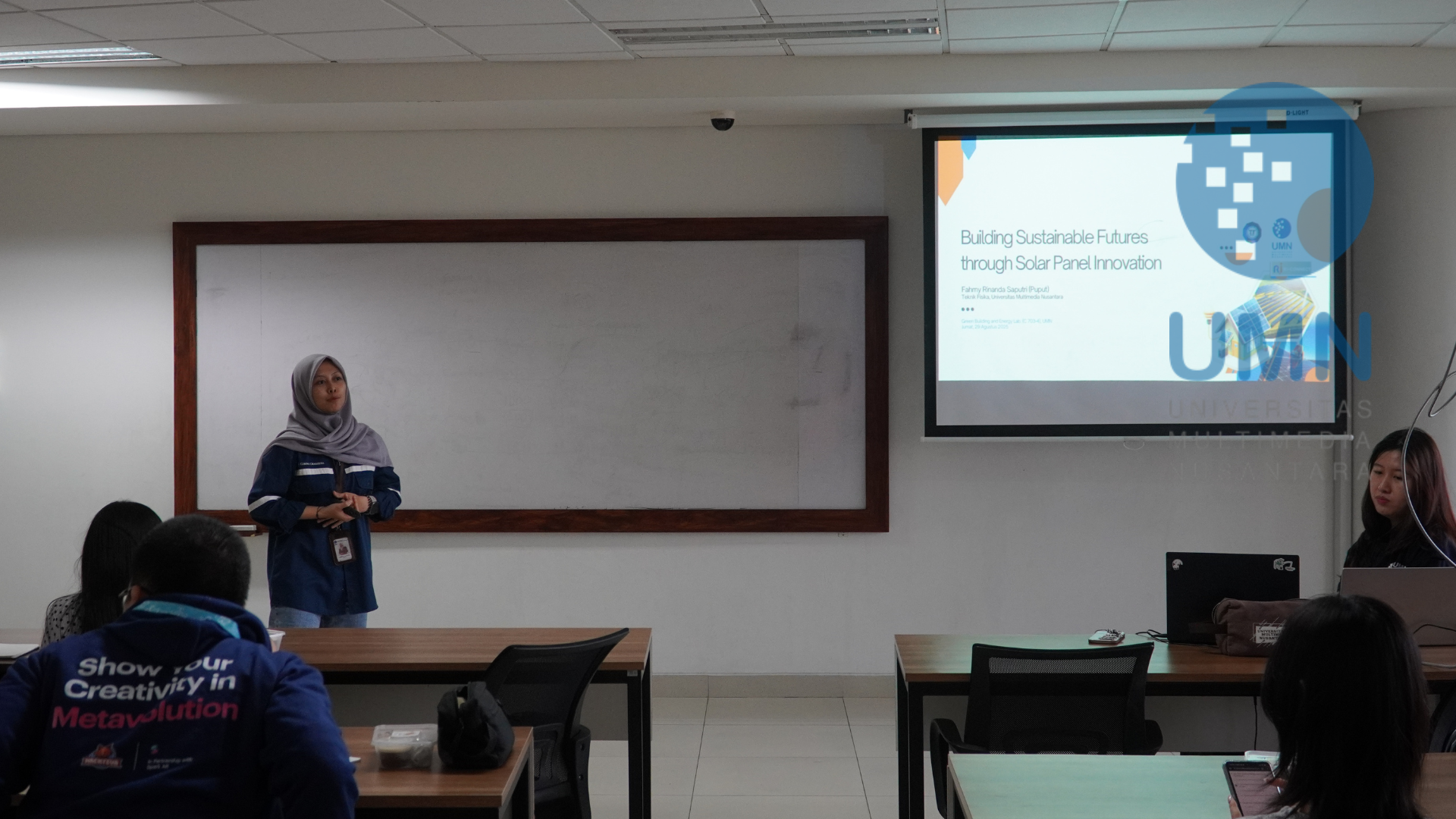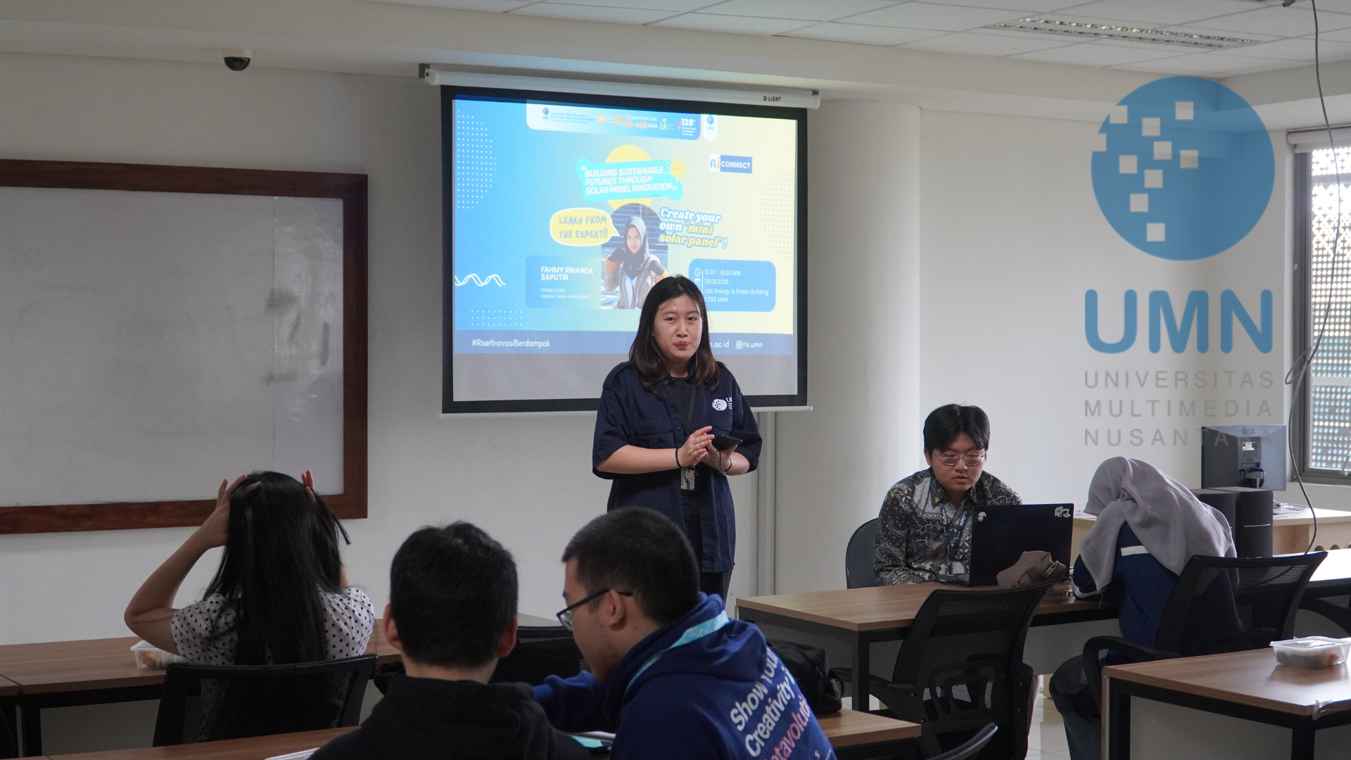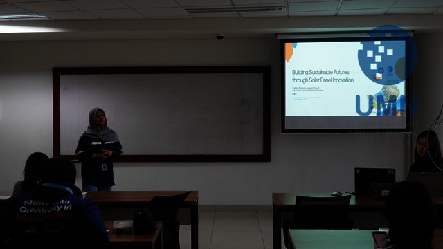 TANGERANG - Pada Jumat (29/08/2025), Departemen Riset & Inovasi UMN menyelenggarakan RI-CONNECT bertema Building Sustainable Futures Through Solar Panel Innovation. Dalam sesi ini, Fahmy Rinanda Saputri dari Teknik Fisika UMN menjadi pembicara dan memperkenalkan konsep energi terbarukan. Peserta juga berkesempatan melakukan praktik langsung dengan membuat panel surya mini. Kegiatan ini diharapkan dapat meningkatkan pemahaman tentang energi bersih serta mendorong inovasi keberlanjutan di lingkungan UMN.