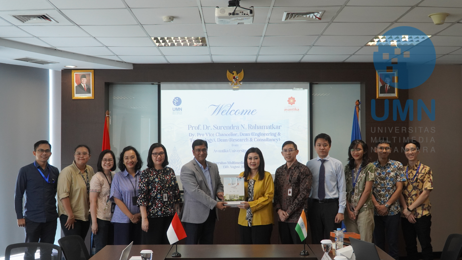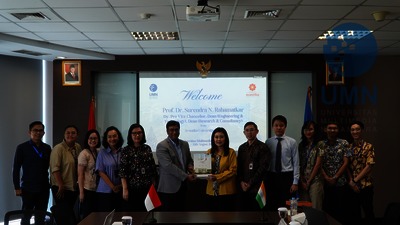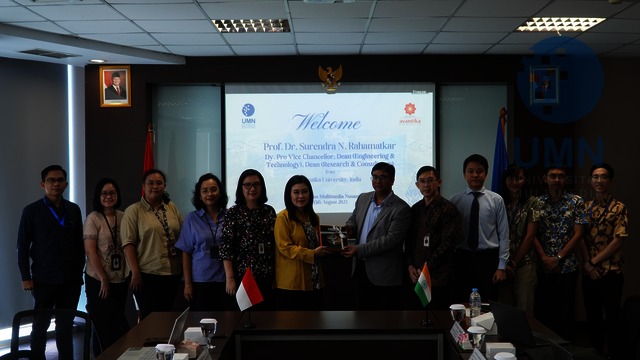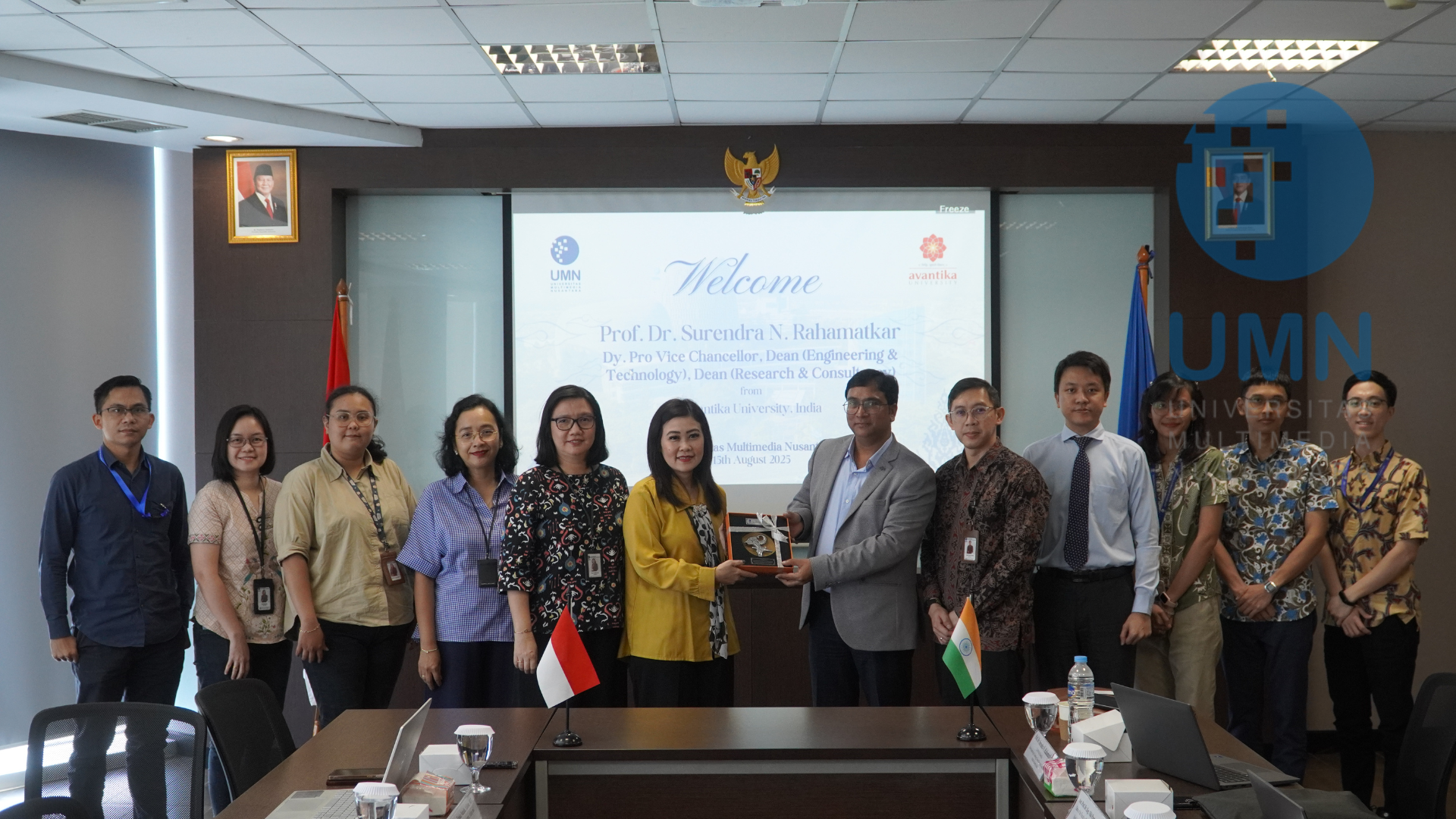 TANGERANG - Fakultas Teknik dan Informatika Universitas Multimedia Nusantara (UMN) menerima Visiting Professor Prof. Dr. Surendra N. Rahamarkar dari Avantika University, India, mulai Senin (15/09/2025). Program yang berlangsung selama dua minggu ini menjadi langkah UMN untuk memperkuat kolaborasi internasional dan mendukung target menjadi world class university. Kunjungan ini membuka peluang kerja sama di berbagai bidang seperti pertukaran pelajar dan dosen, joint-research, pengembangan kurikulum, hingga kolaborasi pada kompetisi internasional. Wakil Rektor Bidang Akademik dan Internasionalisasi, Prof. Dr. Friska Natalia, menekankan bahwa program ini diharapkan memberi manfaat akademik bagi dosen dan mahasiswa. Wakil Rektor Bidang Riset, Prof. Dr. Florentina Kurniasari T., juga menyoroti peluang kolaborasi riset dan hibah internasional. Sementara itu, Wakil Rektor Bidang Kemahasiswaan, Dr. Ika Yanuarti, menambahkan potensi kerja sama kemahasiswaan lintas universitas dan negara. Prof. Rahamarkar menyambut baik peluang kolaborasi lebih luas, termasuk student exchange dan potensi mahasiswa Avantika untuk melanjutkan studi S2 di UMN. Selama kunjungannya, ia akan terlibat dalam kuliah tamu, diskusi kurikulum dan riset, serta kegiatan community outreach di desa binaan UMN dengan fokus pada teknik, informatika, dan sustainability.
