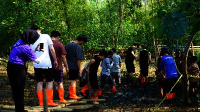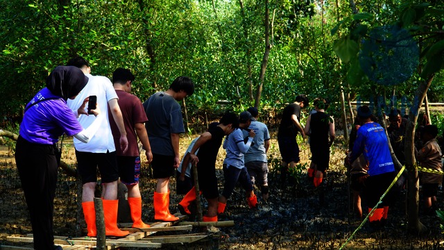CITEUREUP - KPMG bersama UMN SUS, UMN PKM, dan SDN 1 Citeureup menanam 155 pohon mangrove di Lembur Mangrove Patikang Citeureup. Kegiatan ini merupakan bagian dari pembelajaran dasar mitigasi bencana yang penting diterapkan di sekolah-sekolah pesisir dan wilayah rawan bencana.