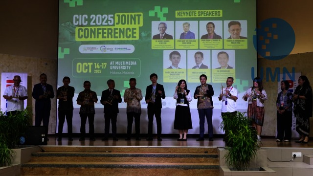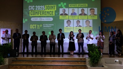TANGERANG - Universitas Multimedia Nusantara (UMN) menyelenggarakan CIC 2025 Joint Conference yang berlangsung pada 14-17 Oktober 2025 di Multimedia University, Malacca, Malaysia. Konferensi ini diselenggarakan secara luring dan daring dengan menghadirkan akademisi serta praktisi dari Indonesia, Malaysia, dan Singapura. CIC 2025 menaungi tiga konferensi internasional, yaitu 8th CONMEDIA, 4th ICONSONICS, dan 5th COMNEWS, yang membahas pemanfaatan Artificial Intelligence, media, sistem cerdas, serta kolaborasi manusia dan mesin untuk pembangunan berkelanjutan. Kegiatan ini juga didukung oleh publikasi prosiding di IEEE Xplore Digital Library dan Atlantis Press, serta menghadirkan pembicara kunci dari berbagai institusi akademik dan industri.