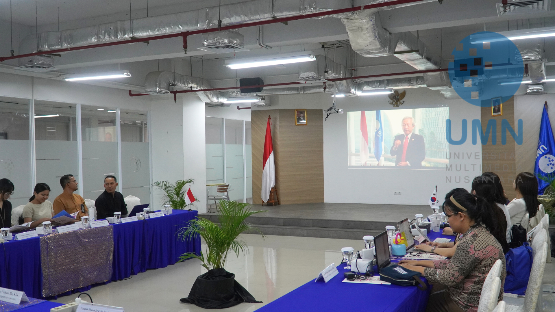 TANGERANG - Pada tanggal (17/10/2025), Fakultas Seni dan Desain (FSD) Universitas Multimedia Nusantara (UMN) kembali menggelar diskusi kolaborasi dengan mitra internasionalnya, Korean University of Media Arts (KUMA), Korea Selatan. Pertemuan ini membahas penguatan kerja sama yang telah berjalan, mulai dari program pertukaran mahasiswa, visiting professor, hingga peluang kolaborasi riset bersama bagi dosen dan mahasiswa. Dekan FSD UMN, Muhammad Cahya Mulya Daulay, menyampaikan bahwa kolaborasi dengan KUMA memberikan pengalaman akademik dan budaya yang berharga bagi sivitas akademika UMN. Hal ini juga diperkuat dengan tanggapan positif dari pihak KUMA yang menilai program pertukaran mahasiswa berjalan baik dan memberikan pemahaman lintas budaya. Ke depan, kedua institusi sepakat untuk memperluas kerja sama melalui penelitian bersama, program sosial, serta pertukaran dosen guna memperkuat hubungan akademik yang berkelanjutan.