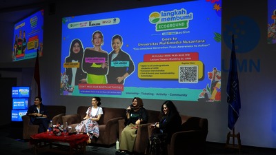 TANGERANG - Universitas Multimedia Nusantara menjadi tuan rumah kegiatan Langkah Membumi Ecoground bersama Blibli sebagai upaya mendorong kesadaran dan aksi nyata keberlanjutan di kalangan mahasiswa (28/10/2025). Kegiatan ini mengangkat tema Eco Conscious Generation From Awareness to Action dan menghadirkan diskusi lintas sektor mengenai isu lingkungan dan peran generasi muda. Program ini menghadirkan Jeany Hartriani dari Katadata Green, Nazrya Octora dari Blibli, serta Cinta Laura Kiehl sebagai Changemaker Partner yang menekankan bahwa krisis lingkungan berdampak langsung pada kemanusiaan dan kualitas hidup. Mahasiswa diajak memulai aksi sederhana namun berkelanjutan dalam kehidupan sehari-hari. Melalui kegiatan ini, UMN dan Blibli menegaskan pentingnya kolaborasi kampus dan industri dalam membangun generasi muda yang peduli lingkungan dan berani mengambil tindakan nyata.