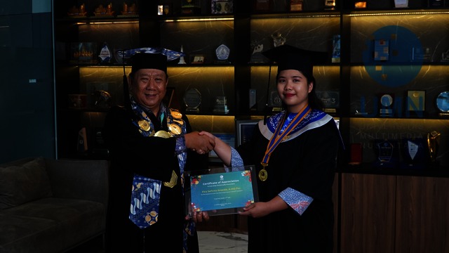 TANGERANG - Fira Sefirna Ananda terpilih sebagai Wisudawan Terbaik Program Studi D3 Perhotelan pada Wisuda UMN XXIX yang digelar (11/10/2025). Prestasi ini diraih berkat konsistensinya dalam akademik, organisasi, dan pengalaman industri perhotelan. Fira mencatatkan IPK 3,81, meraih 59 SKKM, serta menorehkan prestasi internasional dengan meraih Juara 3 International Competition Chef Indonesia Salon Culinaire 2023. Ia juga aktif dalam organisasi mahasiswa, termasuk BEM dan Himpunan Mahasiswa Perhotelan UMN. Pengalaman magang di Hotel Tentrem Yogyakarta memperkuat pandangannya bahwa kerendahan hati, komunikasi, dan kemampuan bekerja sama menjadi kunci utama dalam industri hospitality. Menurut Fira, prestasi bukan hanya soal kemampuan teknis, tetapi juga sikap, konsistensi, dan kesiapan menerima masukan. Ke depan, ia berencana berkarier di hotel bintang lima pada bidang front office atau sales and marketing, serta berkontribusi pada pengembangan pariwisata Indonesia. Ia berpesan kepada mahasiswa UMN untuk berani mencoba hal baru, aktif berorganisasi, dan fokus mengembangkan soft skill sebagai bekal memasuki dunia profesional.