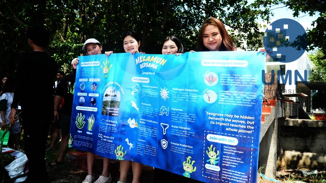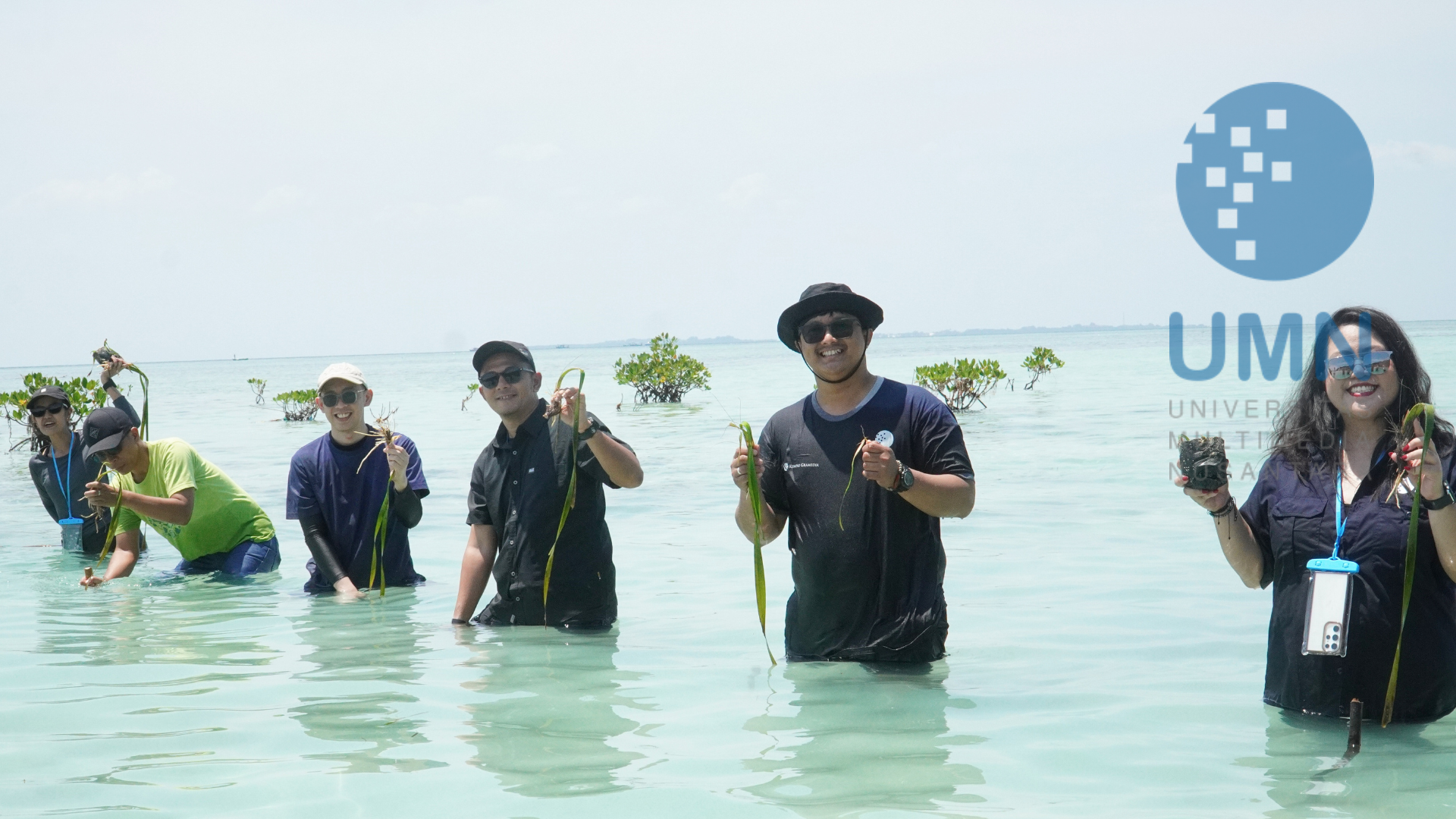 PULAU PARI - Pada tanggal (01/11/2025), Universitas Multimedia Nusantara (UMN) melalui UMN ECO melaksanakan kegiatan penanaman lamun di Pantai Bintang, Pulau Pari. Kegiatan ini melibatkan mahasiswa, dosen UMN, tim Riset, Inovasi, dan Sustainability UMN, serta Visiting Professor dari University of the Philippines Diliman, Prof. Randy Jay C. Solis, Ph.D. Penanaman lamun dilakukan sebagai upaya edukasi keberlanjutan secara langsung. Lamun berperan penting dalam menjaga ekosistem laut, menyerap karbon, menjadi habitat biota laut, serta mencegah erosi pantai. Melalui kegiatan ini, mahasiswa tidak hanya memahami konsep keberlanjutan secara teori, tetapi juga praktik di lapangan. Prof. Randy menilai kegiatan ini sebagai langkah positif dalam menanamkan kesadaran lingkungan kepada mahasiswa dan berharap program serupa terus berlanjut agar memberi dampak jangka panjang bagi alam dan generasi muda.