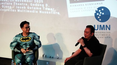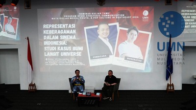 TANGERANG - Rabu (19/11/2025), Fakultas Ilmu Komunikasi Universitas Multimedia Nusantara (UMN) menggelar kuliah tamu dengan menghadirkan Bismakara Kurniawan, Founder dan CEO Bumilangit Entertainment. Dalam kuliah tamu ini, Bismakara membahas perkembangan lanskap industri hiburan di Indonesia yang semakin dipengaruhi oleh teknologi, media sosial, dan perubahan perilaku Gen Z. Bismakara menekankan pentingnya storytelling dalam membangun karakter dan branding, serta relevansi cerita agar dapat membangun empati penonton. Ia juga menyoroti peluang dan tantangan industri hiburan ke depan, termasuk pemanfaatan Artificial Intelligence secara etis untuk mendorong kreativitas dan efektivitas produksi konten.
