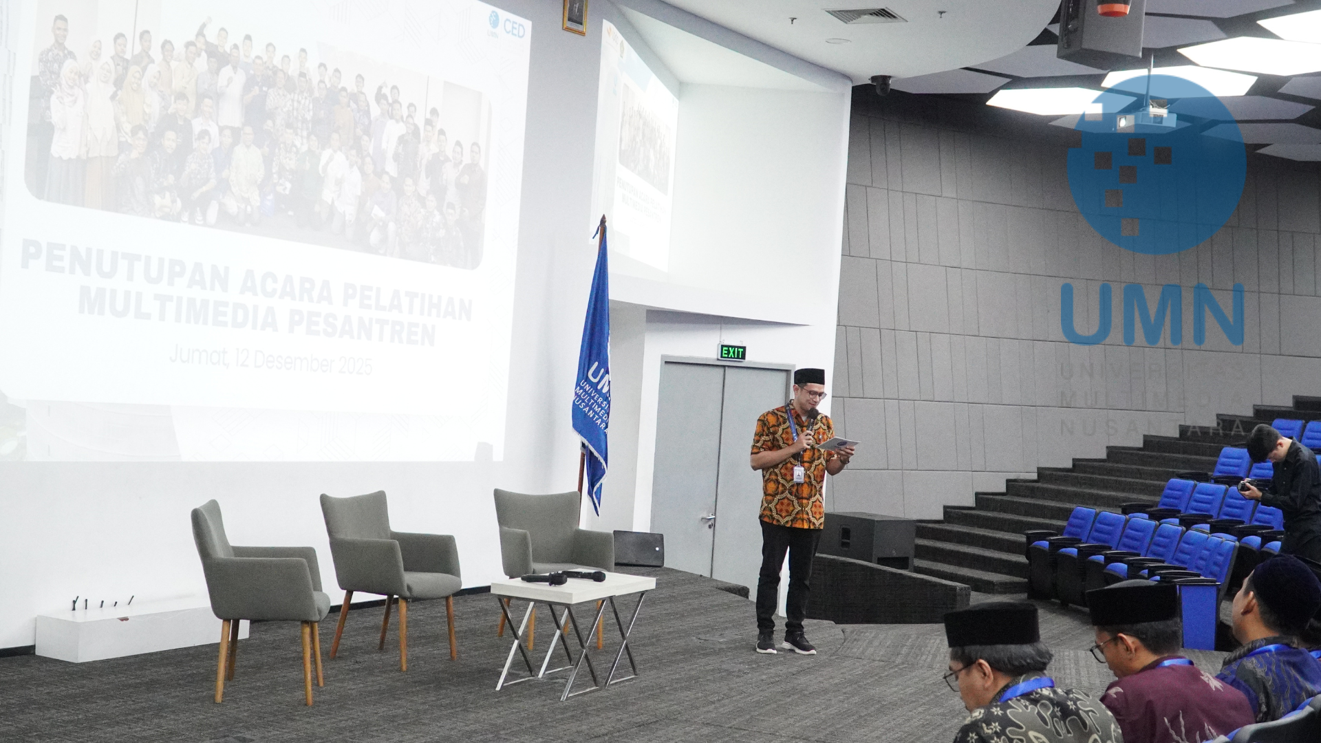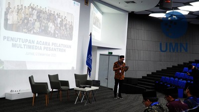 Tangerang - Rabu (12/11/2025) Pelatihan Multimedia Pesantren yang diselenggarakan Continuing Education Department (CED) UMN selama satu bulan berhasil membekali para santri dengan keterampilan multimedia. Pada penutupan kegiatan, peserta memamerkan berbagai karya digital seperti poster, video, podcast, film pendek, serta perencanaan konten media sosial hasil pembelajaran bersama dosen UMN. Program ini merupakan bentuk komitmen UMN dalam mendukung pengembangan kapasitas santri melalui literasi digital dan pembelajaran berkelanjutan. Diharapkan, keterampilan yang diperoleh dapat diterapkan di pesantren masing-masing serta memberi dampak positif bagi masyarakat melalui media digital yang edukatif dan kreatif.