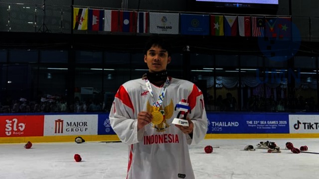 TANGERANG - Mahasiswa Komunikasi Strategis Universitas Multimedia Nusantara (UMN), Daffa Fadilla, berhasil meraih medali emas cabang olahraga ice hockey bersama Tim Nasional Indonesia pada ajang SEA Games 2025 yang diselenggarakan di Thailand International Ice Hockey Arena, Bangkok, pada 22 Desember 2025. Prestasi ini diraih setelah Daffa mengikuti Pemusatan Latihan Nasional sejak Juli 2025 dengan menjalani latihan fisik, teknik di lapangan, serta mengikuti pelatihan dan turnamen internasional di Korea dan Thailand. Keberhasilan tersebut tidak hanya mengharumkan nama Indonesia, tetapi juga menunjukkan dukungan UMN dalam mendorong mahasiswa untuk berprestasi di bidang non-akademik melalui konsistensi, kedisiplinan, dan kerja sama tim.