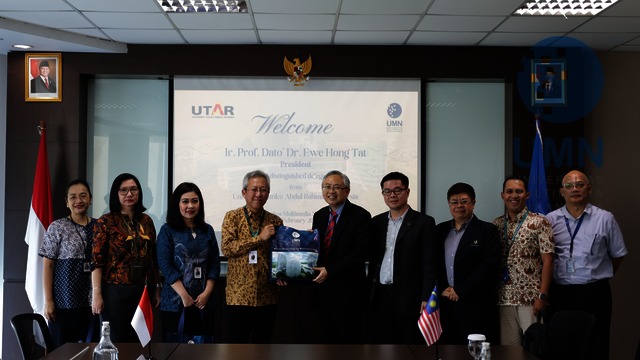 TANGERANG - Universitas Multimedia Nusantara (UMN) menerima kunjungan delegasi Universiti Tunku Abdul Rahman (UTAR), Malaysia, pada 3 Februari 2026 di Tangerang. Kunjungan ini bertujuan memperkuat kerja sama internasional yang telah terjalin melalui MoU serta membuka peluang kolaborasi lebih luas di bidang pendidikan, riset, dan inovasi. Diskusi mencakup berbagai potensi kerja sama seperti riset dan pelatihan Artificial Intelligence (AI), keberlanjutan, pertukaran pelajar, student mobility, joint research, visiting professor, kompetisi internasional, hingga kolaborasi magang. Kolaborasi ini diharapkan dapat meningkatkan reputasi global kedua perguruan tinggi serta memberikan dampak positif bagi mahasiswa dan masyarakat luas.